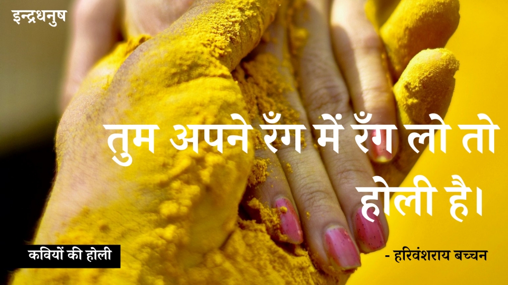 होली के रंग और गाँव में सरसों के पीले फूलों की दूर तक पसरी छवि कवि हरिवंशराय बच्चन की इस कविता में भलीभाँति मिलती है-
