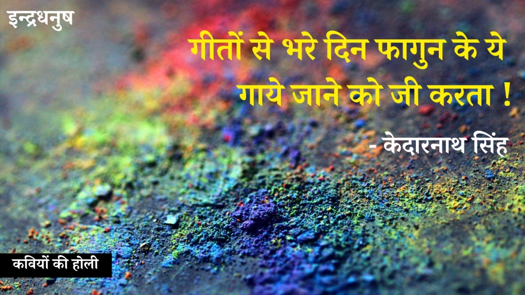 फागुन के रूप-सौंदर्य को कवियों ने अपनी रचनाओं में बड़ी तत्परता और कुशलता से सहेजा है। होली के रंग से भरे कविताओं के कलेवर से हमारा साहित्य-जगत सम्पन्न तो है ही, यह फागुन के आंतरिक और आँचलिक उत्सव को बड़ी विविधता से चित्रित करता है। आज होली के दिन हम कुछ ऐसी ही रचनाओं पर एक नज़र डालें और उत्सव की वह अनूठी छाप कविताओं में देखें :