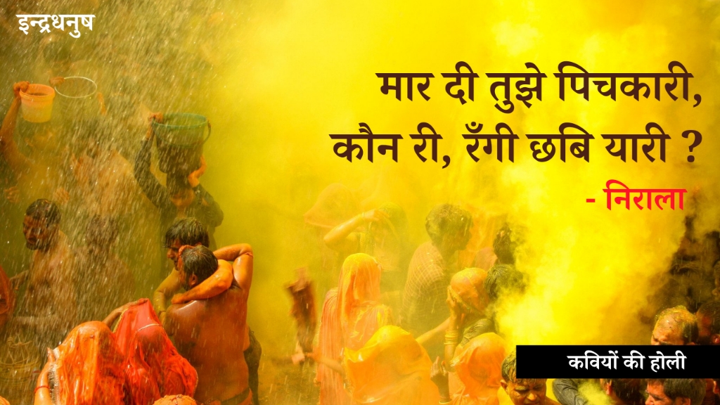 अपनी सुंदर रचना ‘केशर की कलि की पिचकारी’ में हमारे कवि सूर्यकांत त्रिपाठी “निराला” कहते हैं-